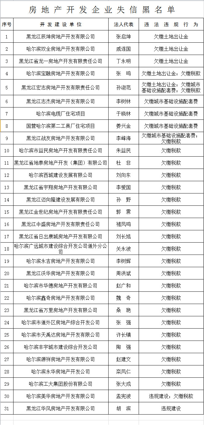 房地产开发建设单位及其相关人员失信黑名单予以公布。